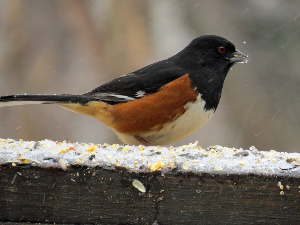 Would you believe it is so cold here in Atlana that the LCD monitor on my camera froze? But not before I had a chance to go out and snap a few pictures. These poor birds are being bombarded by pellets of sleet! And so was the photographer for that matter!