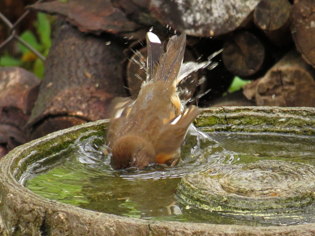 This female towhee bathed with abandon. She thoroughly enjoyed splashing about in the birdbath. I love the warm richness of her colors. Isn’t she delightful?