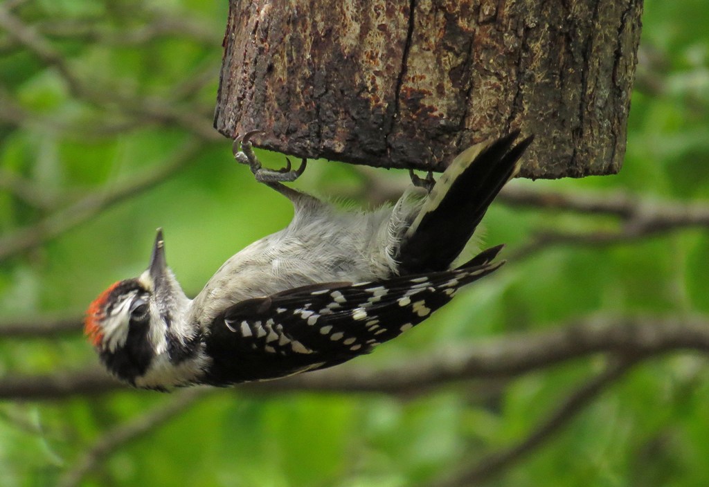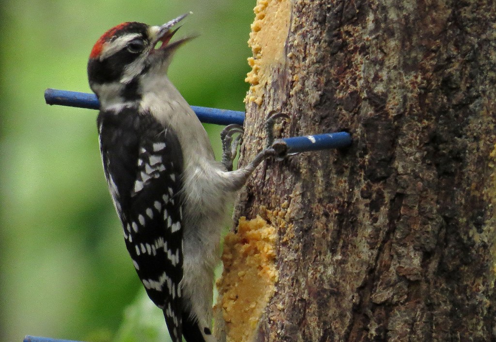 Meet Corte`s – a young male Downy Woodpecker who arrived the same day the baby bluebirds showed up.