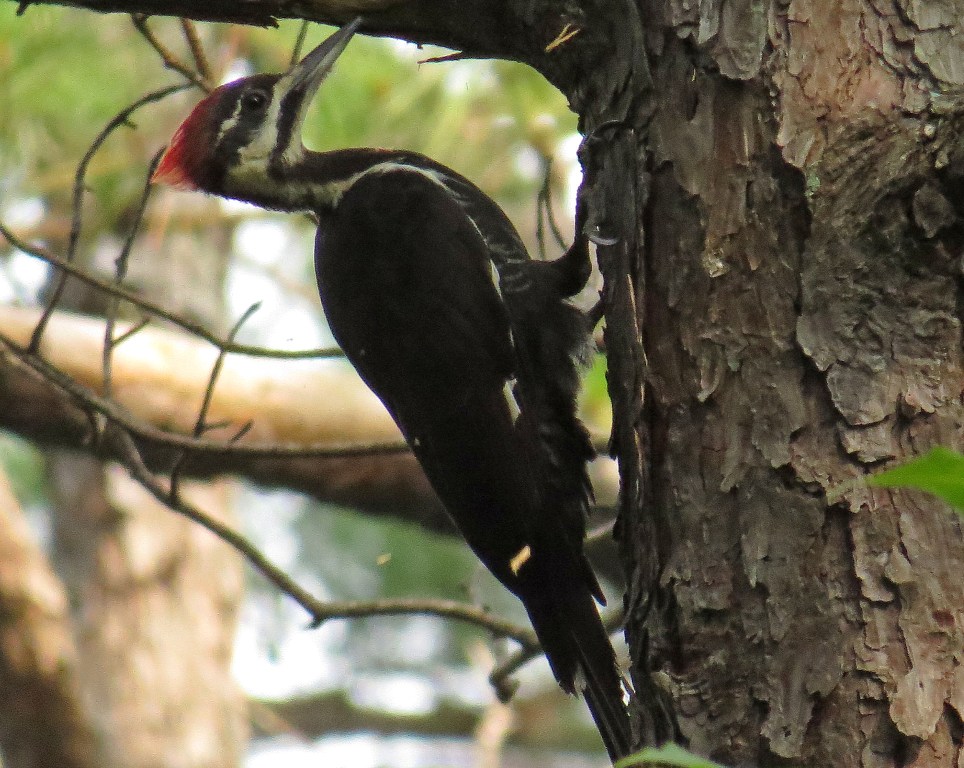 Pileated Woodpeckers mate for life, and are quite territorial. They will rapidly drum on hollow trees and telephone poles to claim an area as their own.