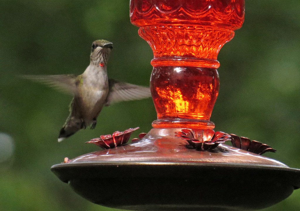 My backyard is buzzing with Ruby-throated Hummingbirds these days. These tiny birds mesmerize me as they dart about displaying their shimmering colors. As I have watched them over the last several weeks, it seems there are three words that describe their daily behavior: guzzle, guard, and groom.
