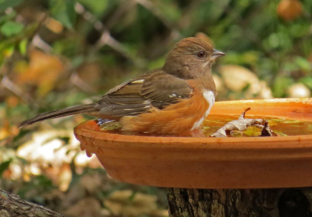 So, without further ado…may I present the female Eastern Towhee. I think she is one of the few birds that looks even prettier when her feathers are wet and ruffled.
