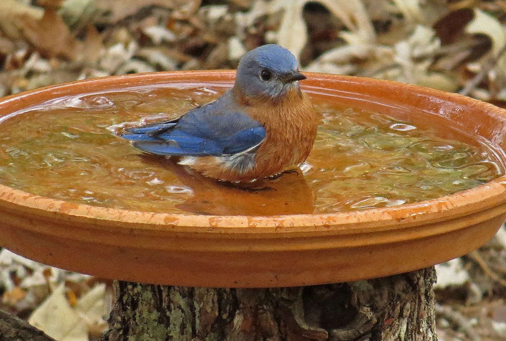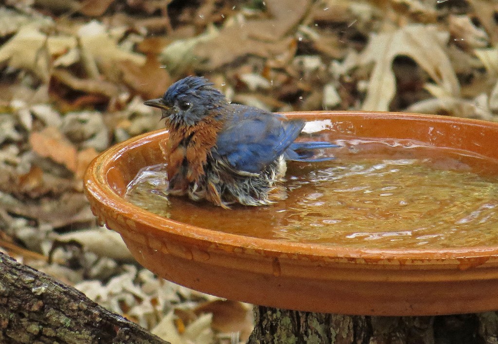 One of my favourite birds, the Eastern Bluebird! How lucky you are to have them year round! These bath photos put a smile on my face reminding me of the young bluebird who shared his life with us this summer. 🙂