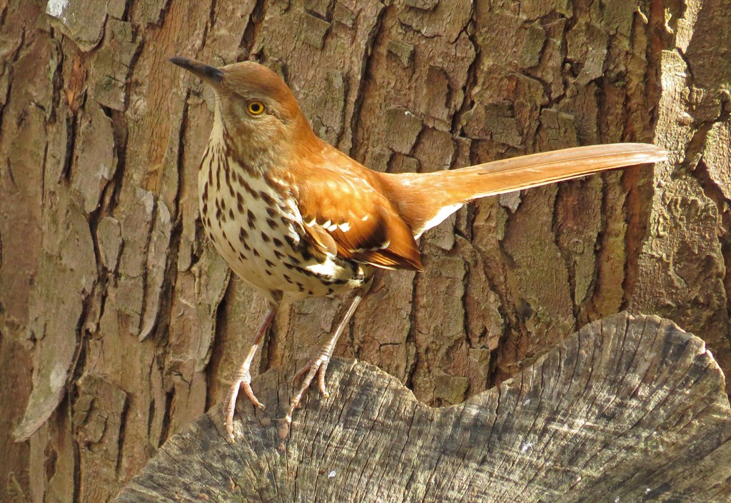 The other day, I was entertained by the antics of a Brown Thrasher who was hanging about in my backyard.