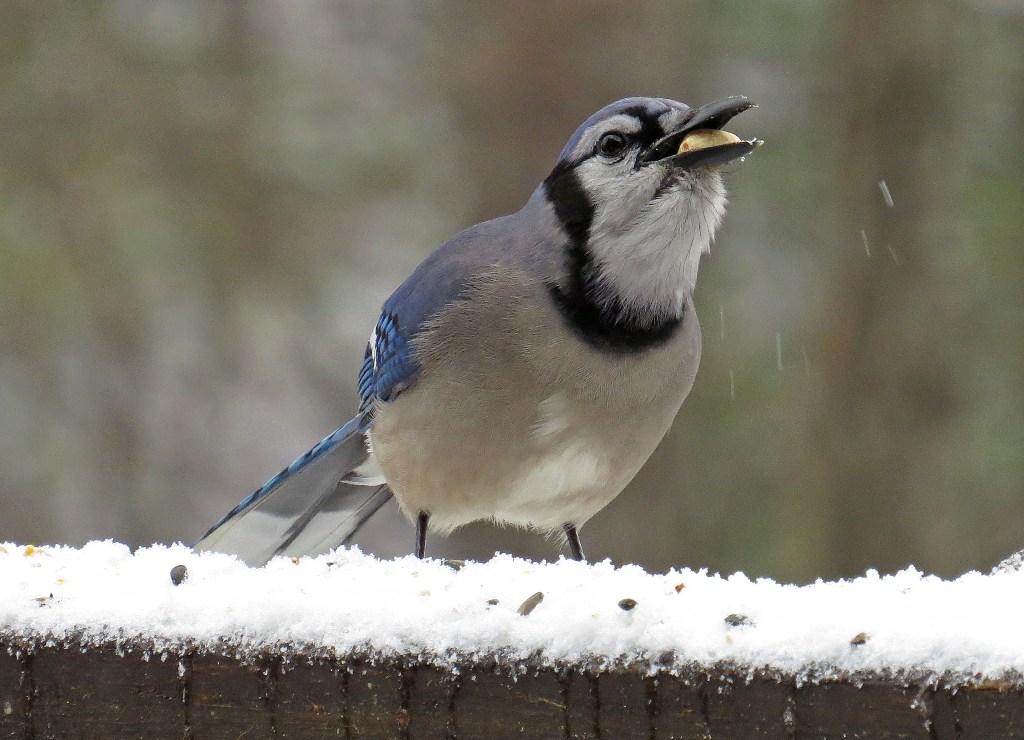 a Titmouse and a Blue Jay dropped in for some peanuts…