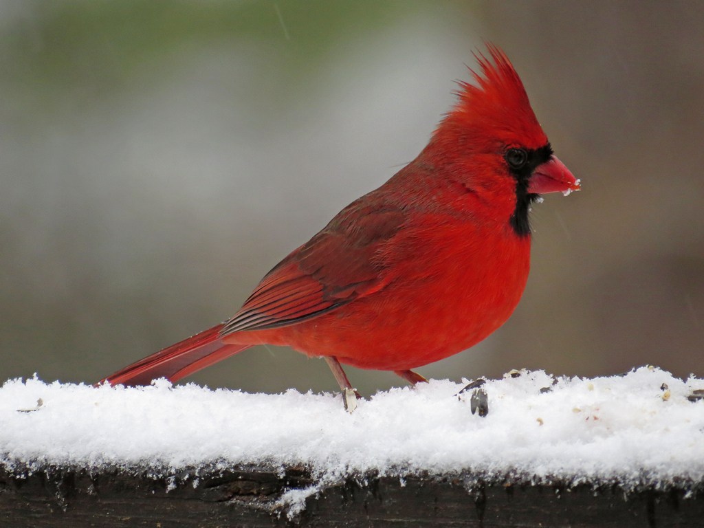 Feathers and flakes…the backyard was a flurry of both!