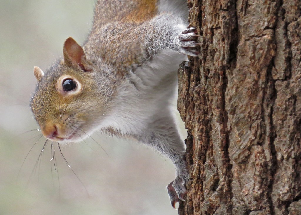 Birds weren’t the only ones searching for food this morning. This squirrel scurried down the Oak Tree and seemed startled by my presence. I considered letting him stay (after all, it’s cold and he’s hungry too) but I quickly thought better of it. I hissed at him, startling him a for second time, and he scurried back up the tree.