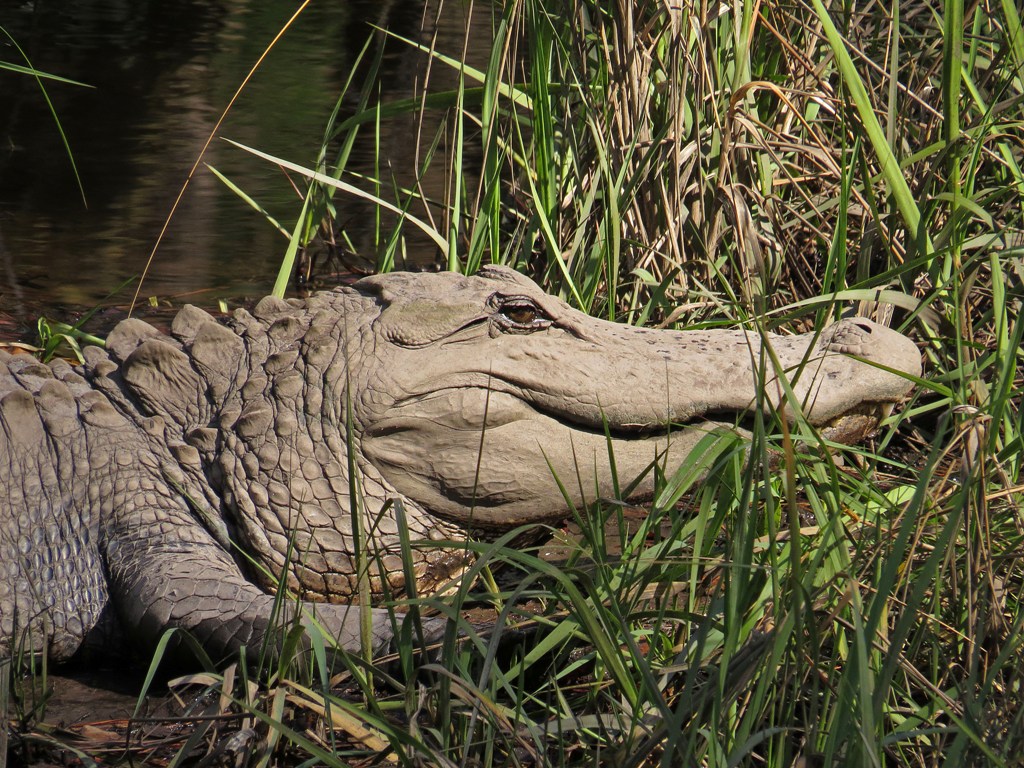 I think this is an occupational hazard for bird watchers, as we often have our eyes glued to the branches above while we meander about. Thankfully, my better half had his eyes on the path. Later, we almost stepped on this alligator.