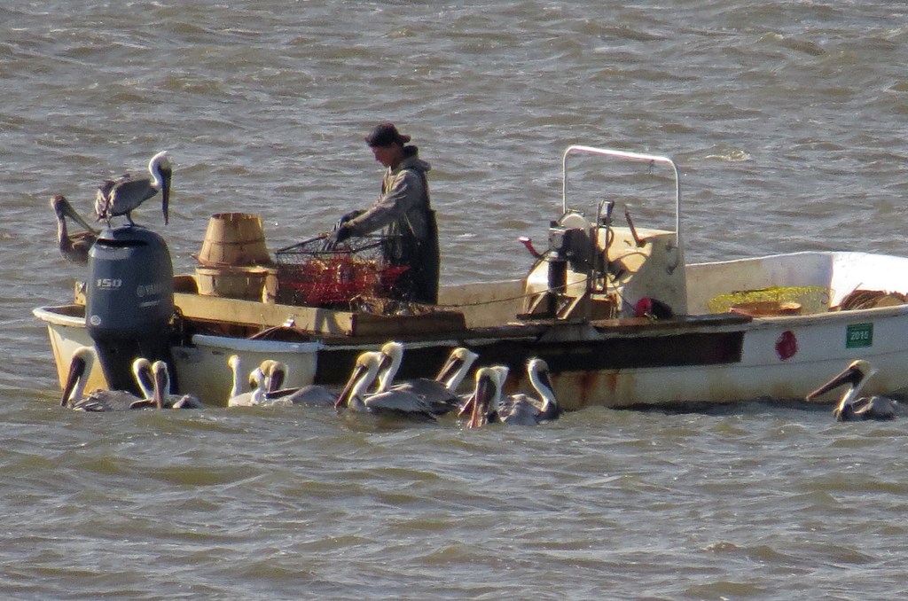 Later that afternoon, as I sat on the balcony sipping a glass of wine and munching on Fritos, I was entertained by a pod of Pelicans. These fellows were following a small motorboat and seemed intent on sharing the catch of the day.