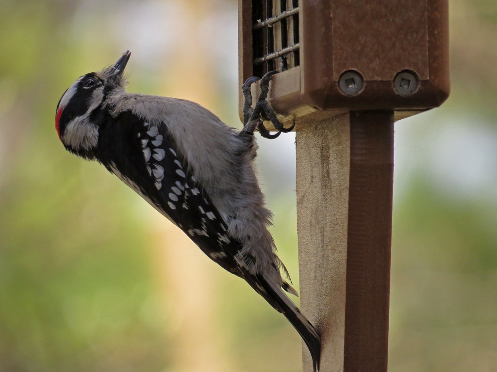 I love how he uses his tail to help balance and support his weight, just like he does when he is on a tree trunk. I guess the fine folks who designed this feeder knew what they were doing!