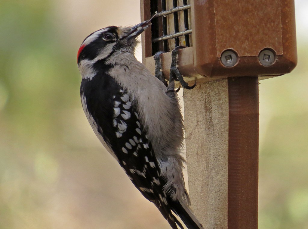 This male Downy Woodpecker was delighted to discover the fresh suet cake (Audubon peanut blend; $1.44 at Walmart) I recently put out.