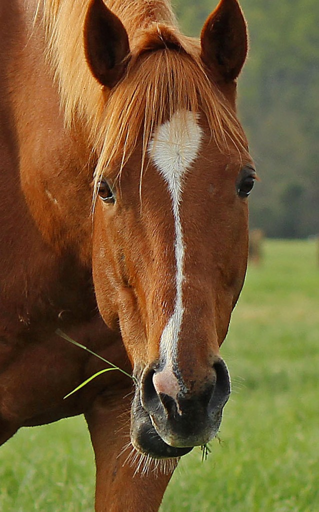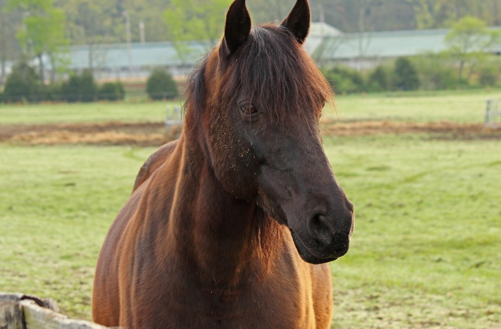 My desired destination was the stables, but I had to stop on the way and snap a quick picture of this deer. She raised her head long enough to decide I wasn’t a threat, and then resumed nibbling the grass in the murky morning light.