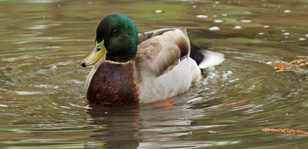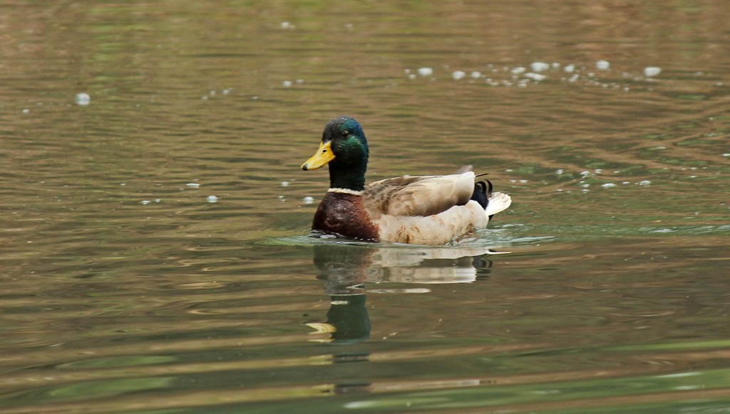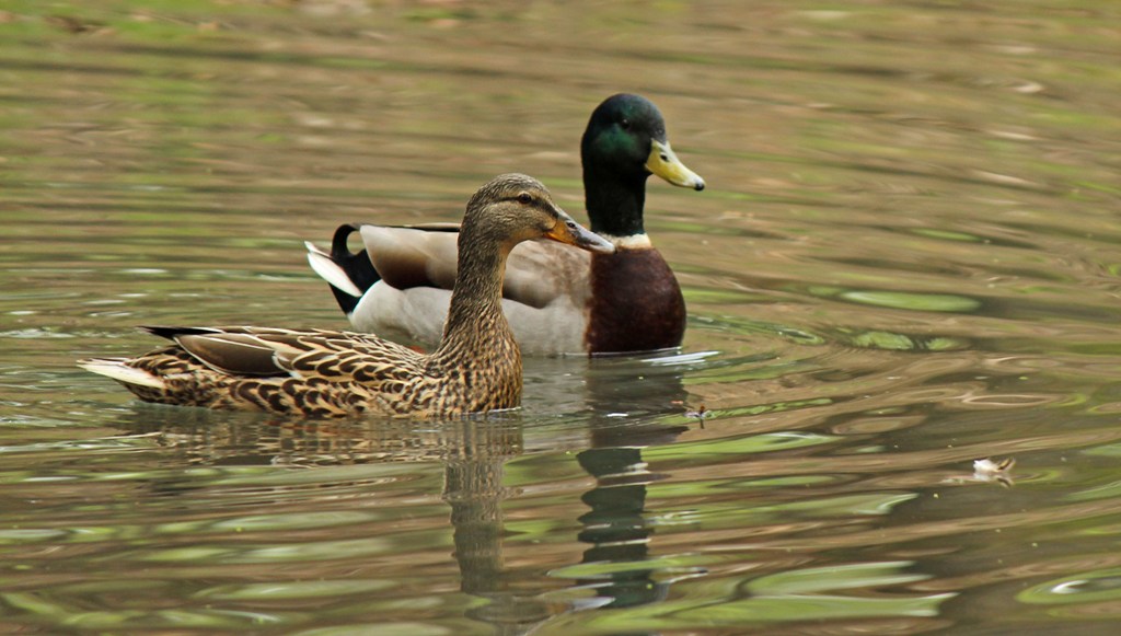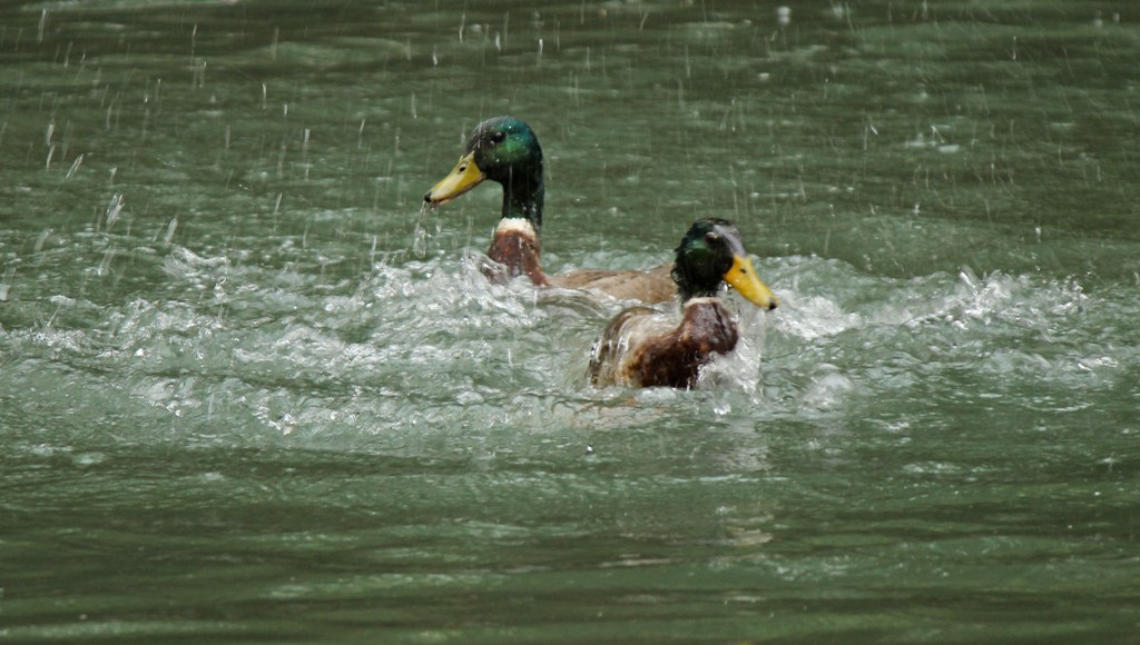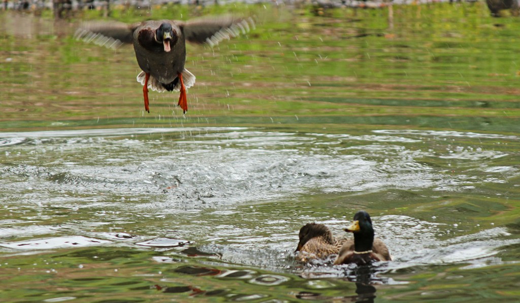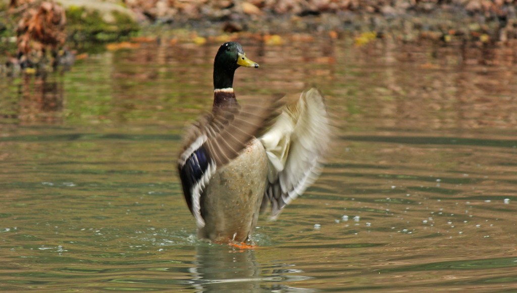 Although the swan has had the starring role in previous posts, the honor this time goes to the male Mallard, who was ferociously flapping his wings to impress his female companion.