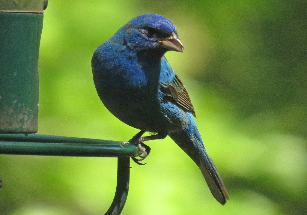 The word “brilliant” has been forever altered for me by the Guinness beer commercials; I simply must say it with an Irish accent! Never-the-less, “brilliant” is the word that came to mind when I looked out my kitchen window this afternoon and saw this male Indigo Bunting perched on a feeder.