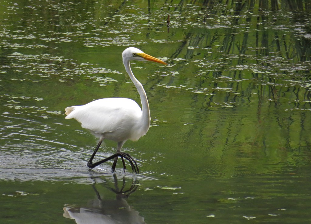 Then the white: A Great Egret who started on the far side of the lake (also known as the blurry photo zone) but gradually made his way closer. These birds are also called Common Egrets, but they are not common to me, so I was thrilled to get some pictures.