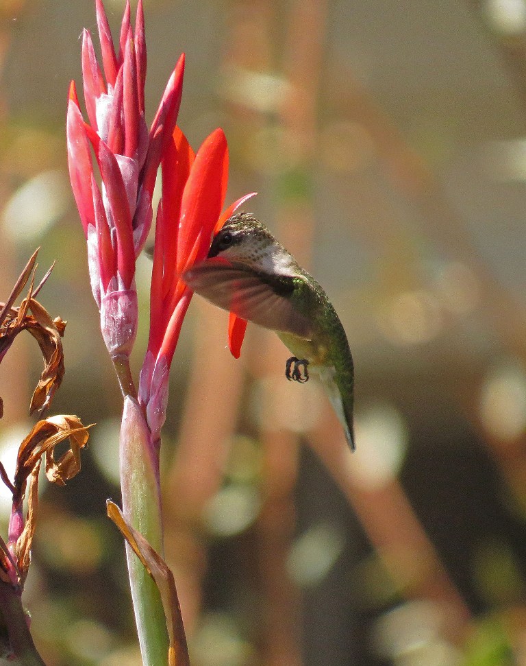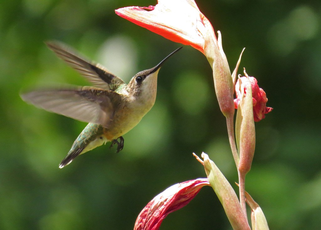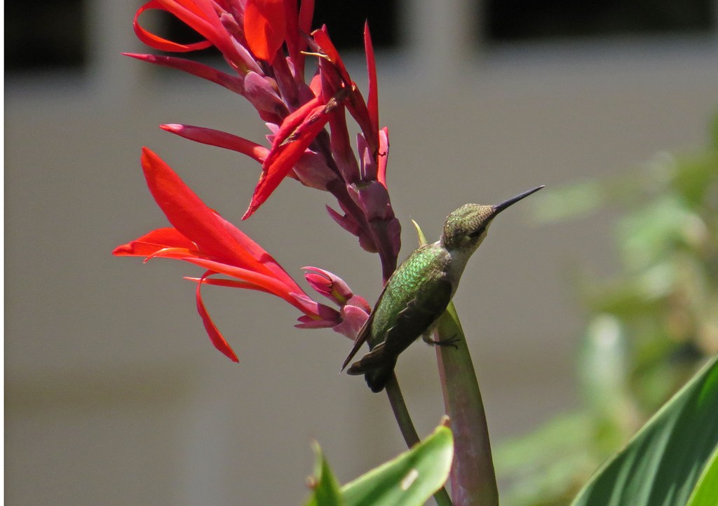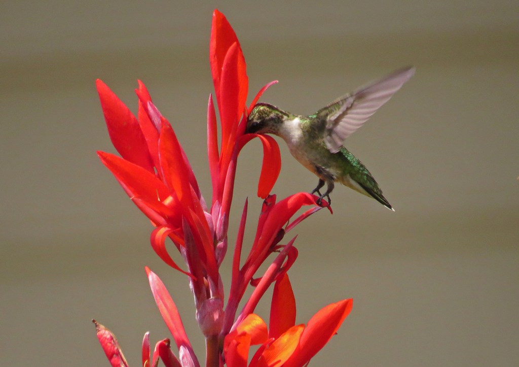 I am not a huge fan of Canna Lilies, but the Ruby-throated Hummingbirds seem to love them, so I guess these flowers have found a safe home in our garden.