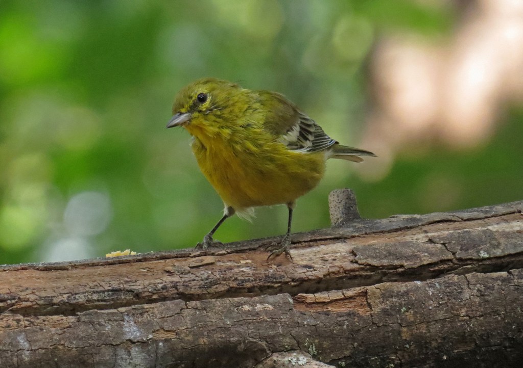 This male Pine Warbler serenaded me from the tree-tops today. ย I don’t see him very often during the summer months, so his visits are always a pleasant surprise.