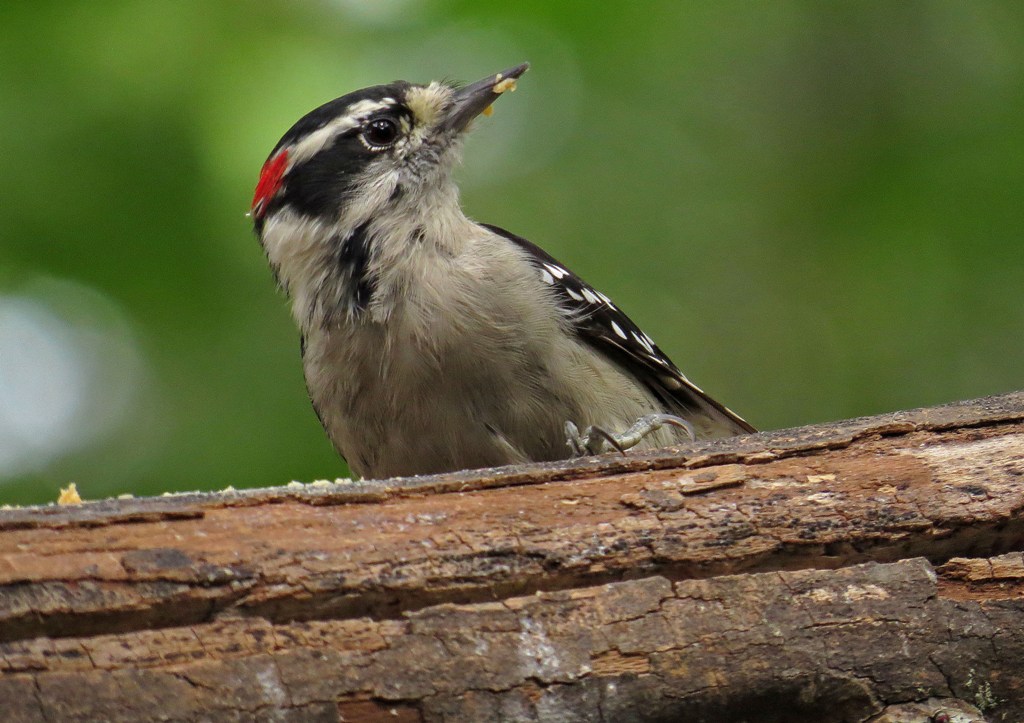 Downy number three was last in line, but eventually dropped down and grabbed a bite to eat.