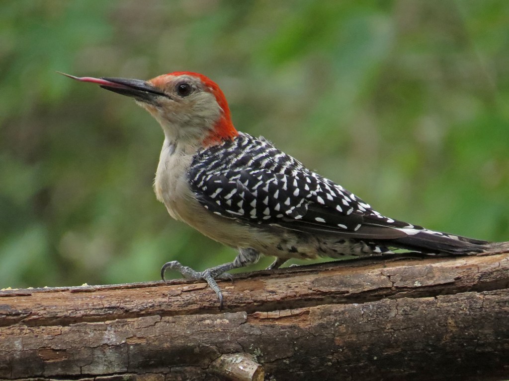 I only had time to take a couple of pictures before an adult Red-bellied (or in this case, Red-bullied) Woodpecker quickly informed this youngster that he was not welcome in the backyard.