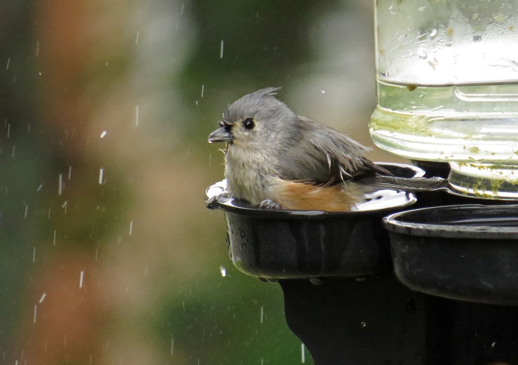 My goodness, such a small bird displacing such a large amount of water, LOL (the titmouse of course!)