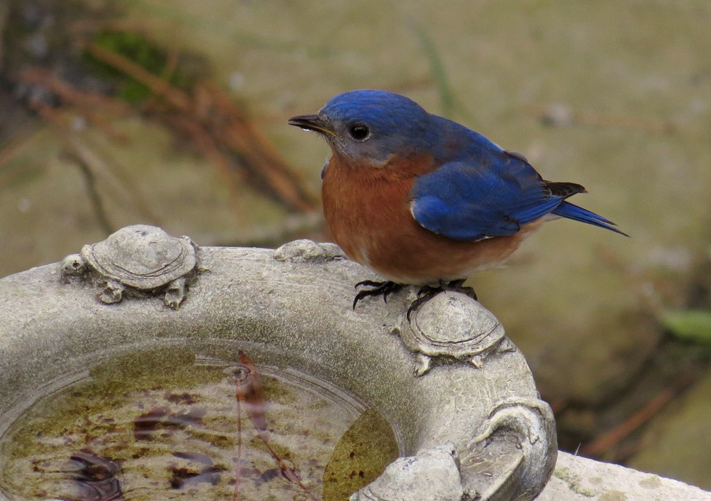 How wonderful to have a bluebird spa in your backyard. Lovely photos!