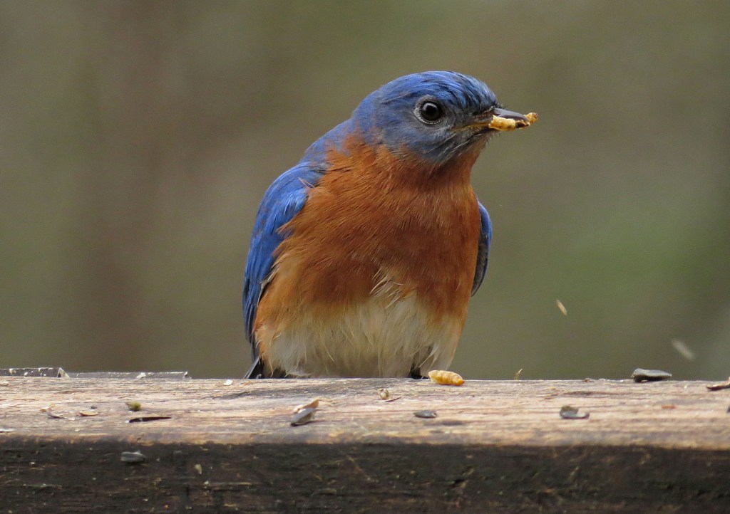 For the past week or so, Bluebirds have been showing up for breakfast (and lunch, and dinner) looking like they’ve just stepped out of the shower.