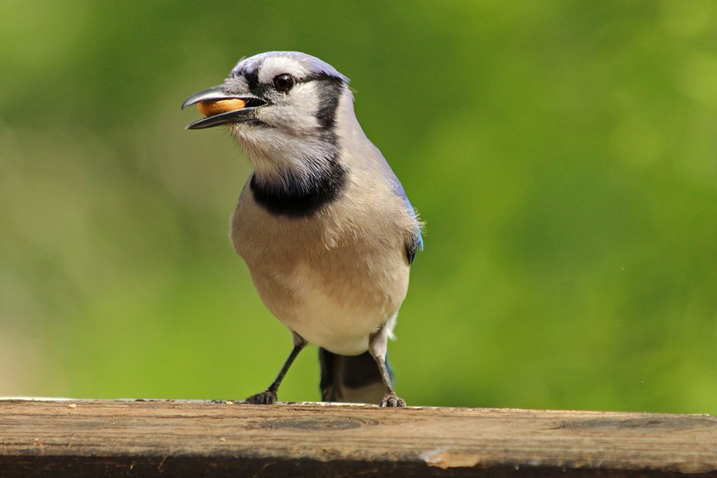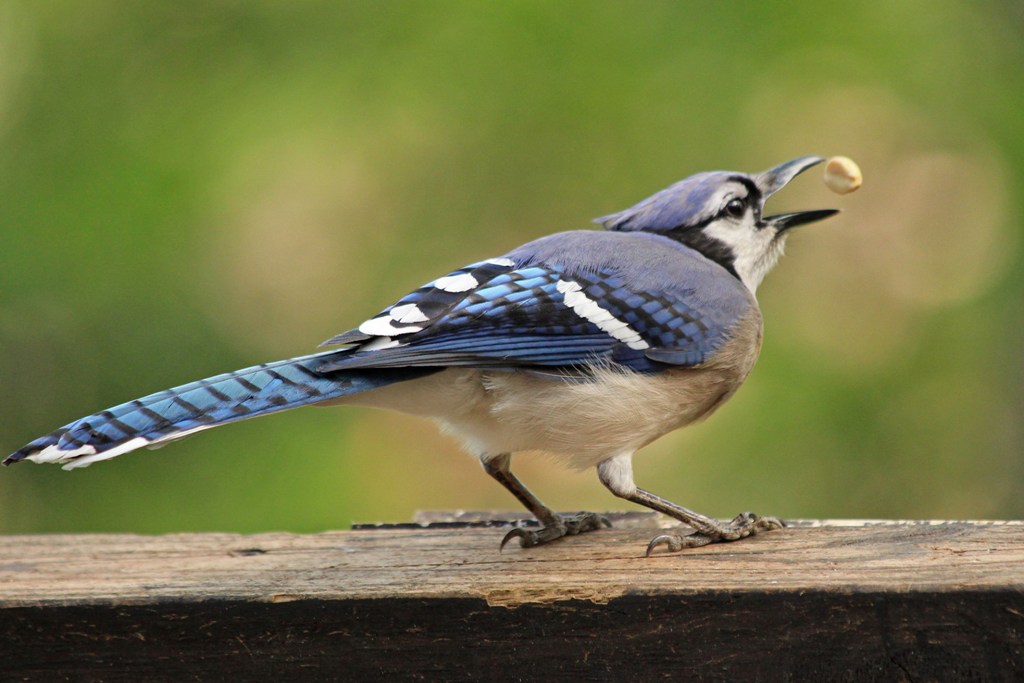 The Blue Jay below seemed to be playing with his food, as he popped a peanut in the air before adding it to his already bulging pouch.