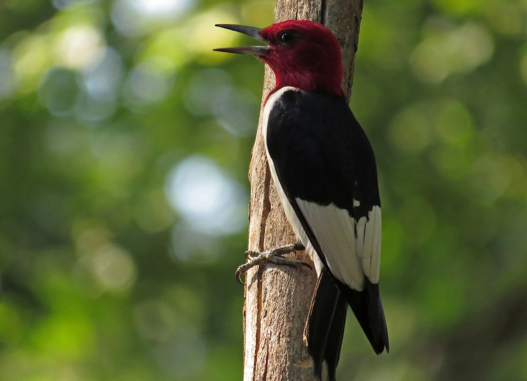 Great captures! You’re right, when the sun glows on them, their head is such a gorgeous, bright red, contrasting their black and white body. He’ll return for more ops, Kathy, he’s enjoying your backyard! π