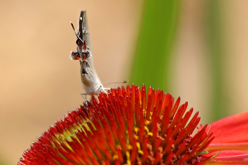 Actually, this is the tail-end of a Gray Hairstreak…a butterfly I may have seen before, but have never truly noticed.