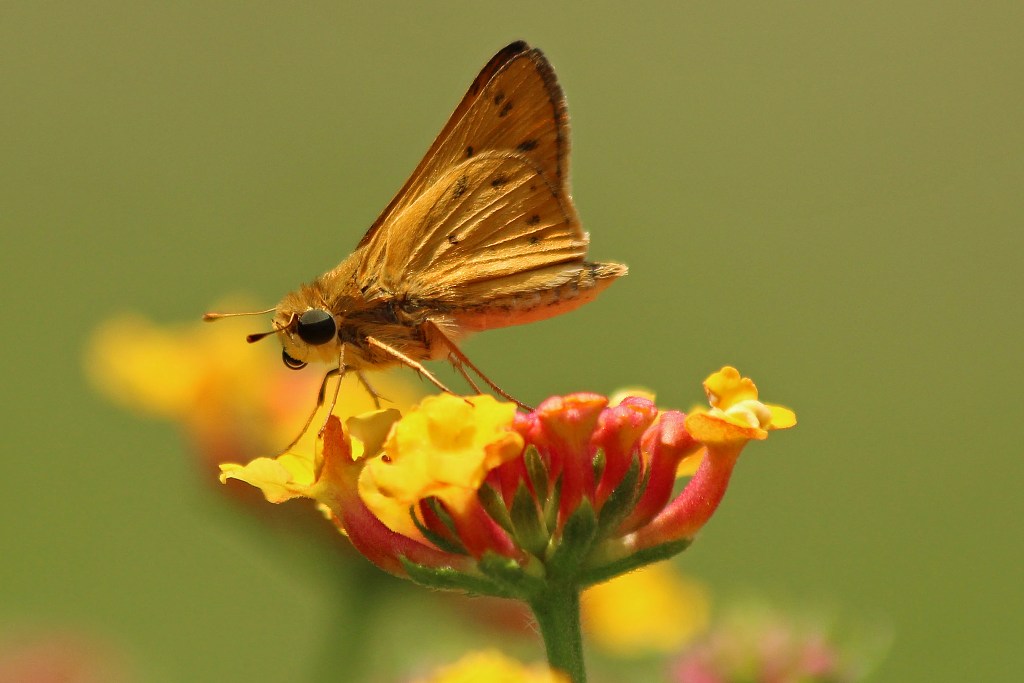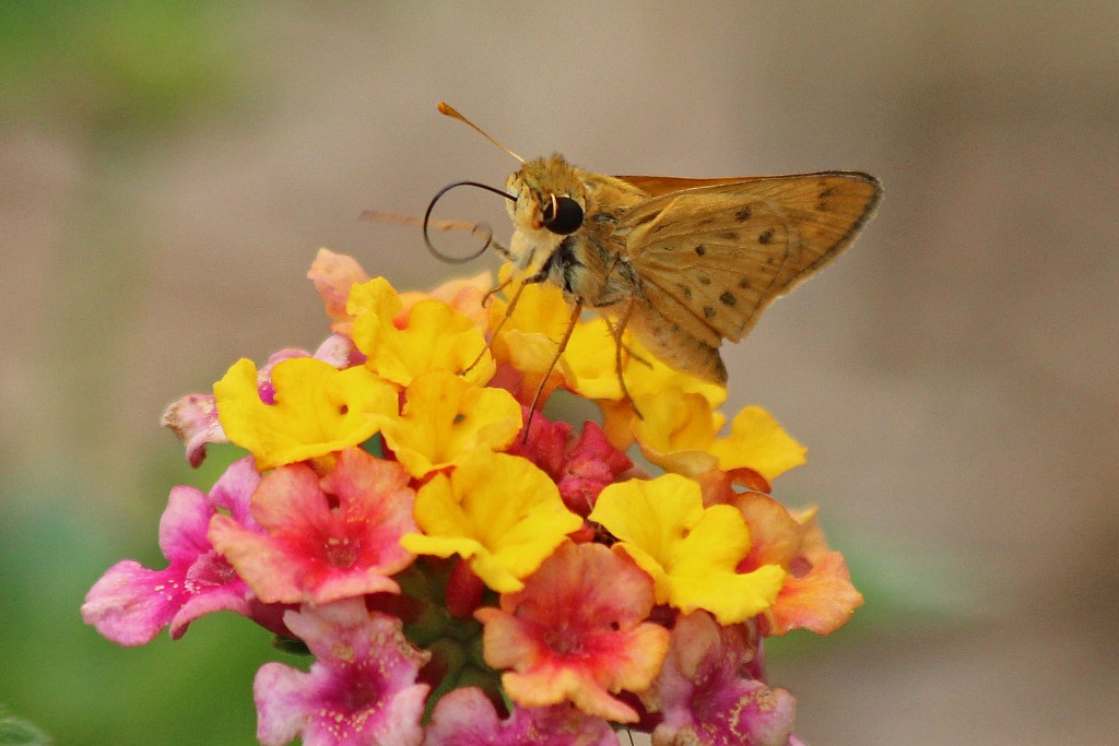 My Lantana has been covered with Fiery Skippers lately, busy sipping nectar in the summer sun. They don’t seem to mind the near hundred degree temperatures in the least.