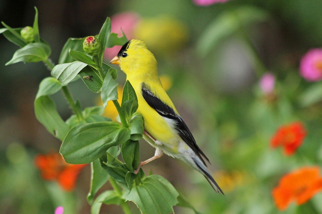 I grow these zinnias every year and watch the goldfinches work them over. The butterflies and bees love the zinnias, too. They really draw in the wildlife.