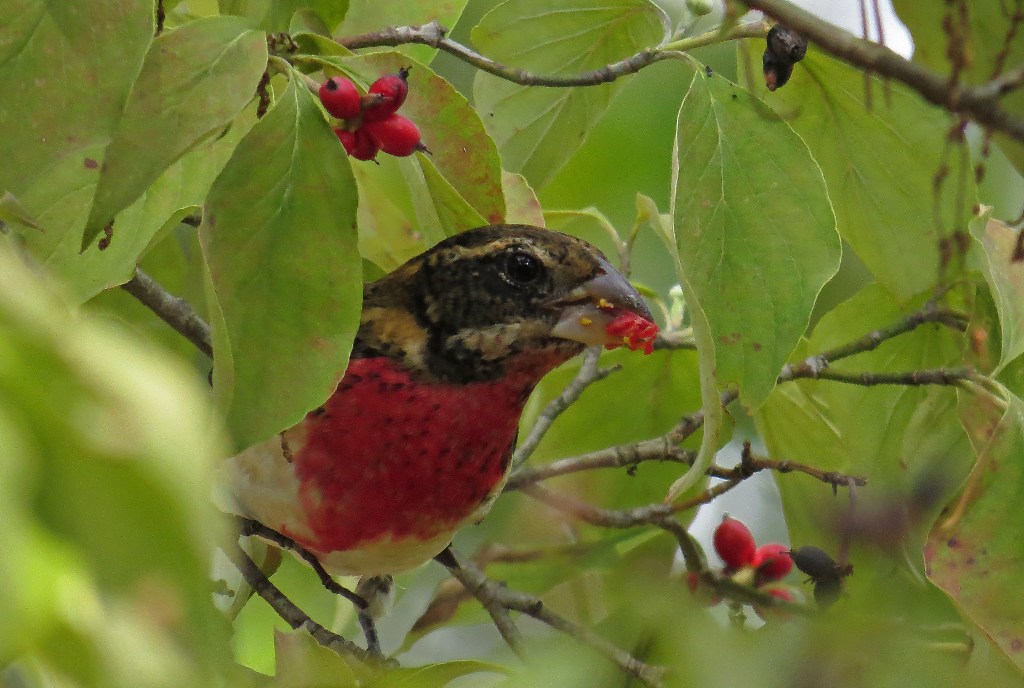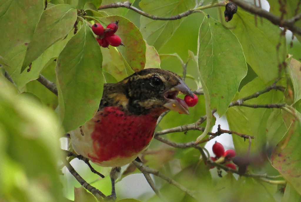 Many of them have begun the long flight to their winter homes and stop by for a brief visit en route. The other day, I looked out in the backyard and was pleased to see my favorite migrator, a Rose-breasted Grosbeak.