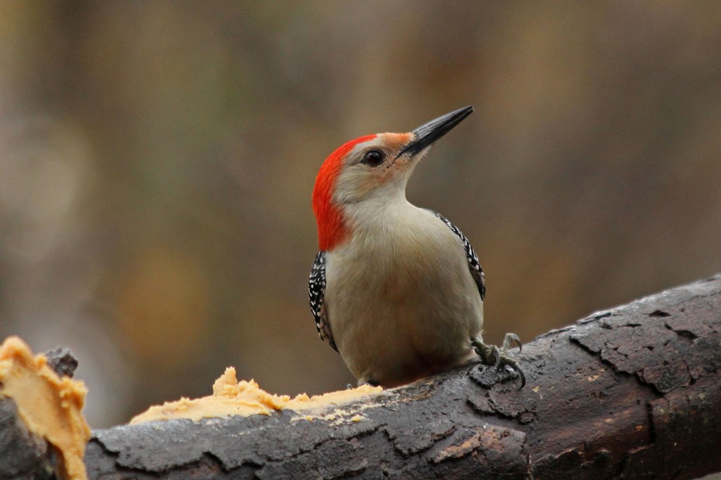 …followed by a Red-bellied Woodpecker who laid claim to the Bark Butter branch.