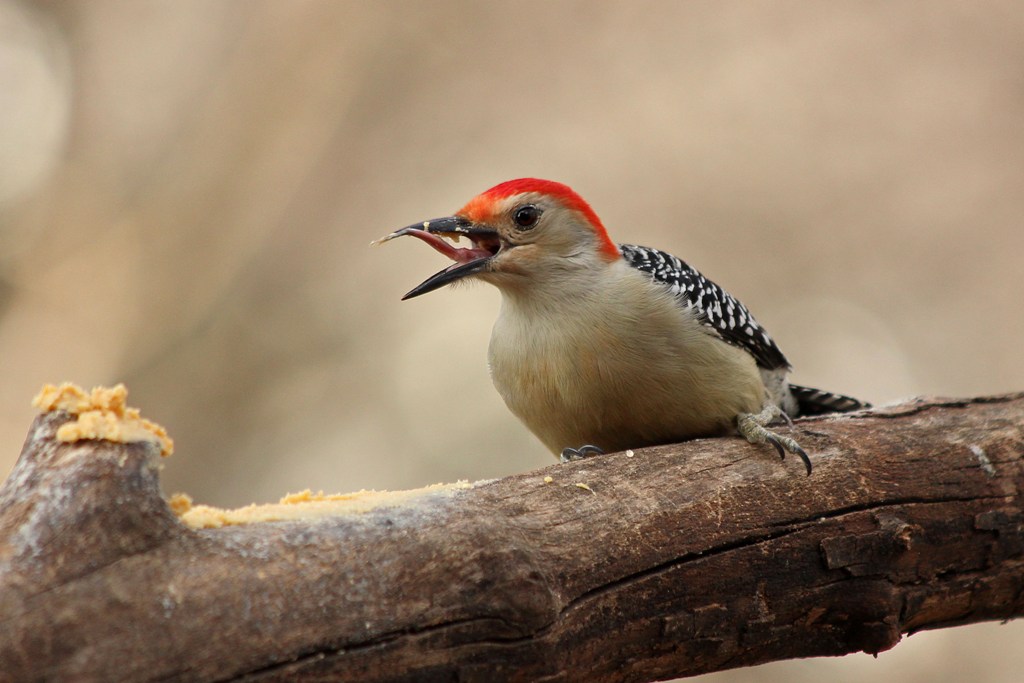 The male Red-bellied Woodpecker that hangs about my backyard is addicted to Bark Butter. He is probably the most frequent feeder on this delicacy.