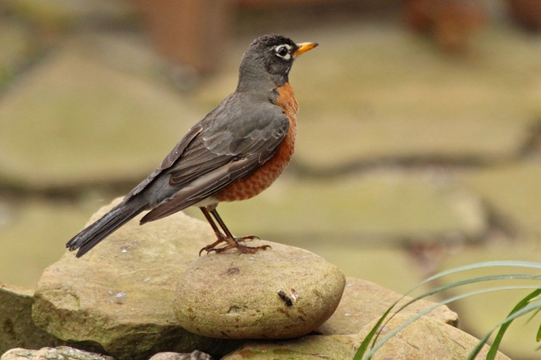 I was down in the backyard taking a picture of this handsome Robin as he perched on the fountain rocks…