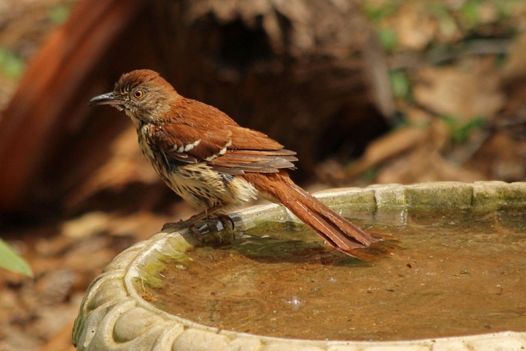 The other day this Brown Thrasher showed up and landed on the edge of the birdbath.