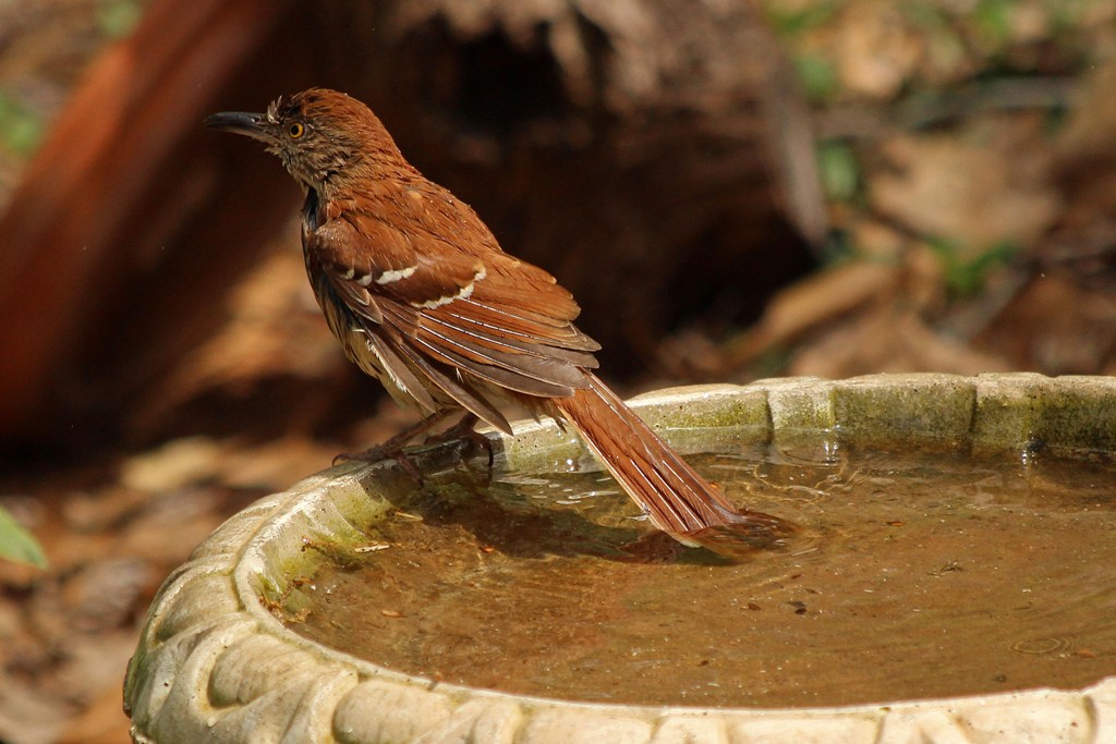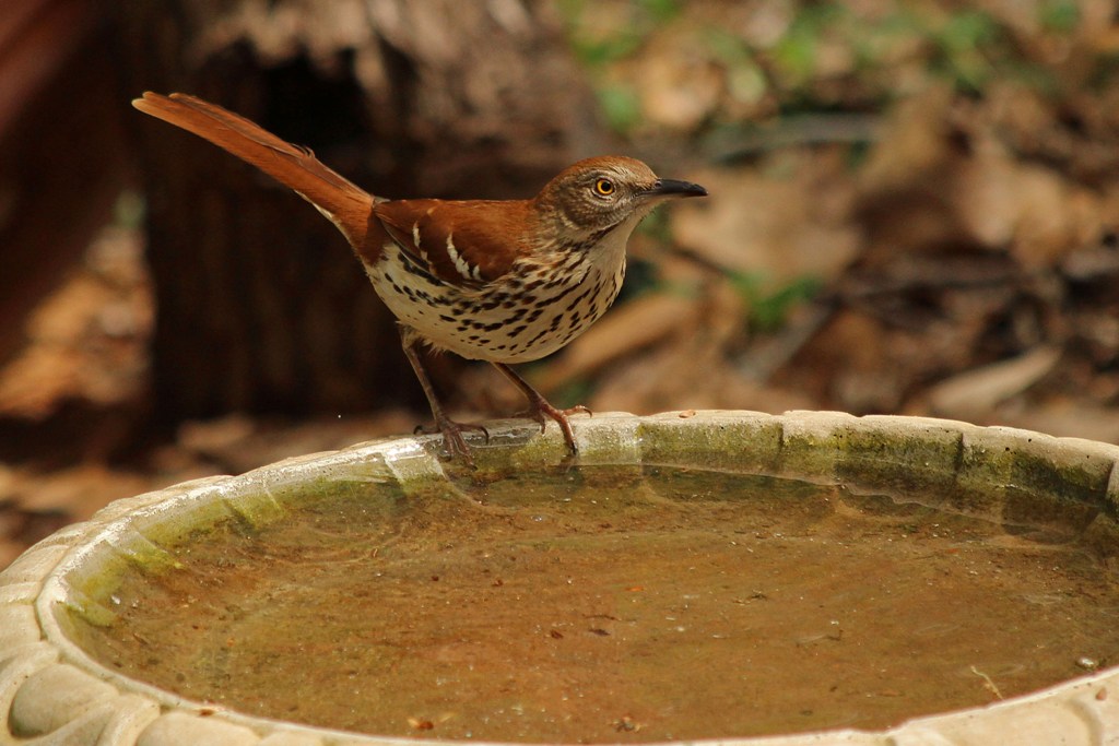 The other day this Brown Thrasher showed up and landed on the edge of the birdbath.