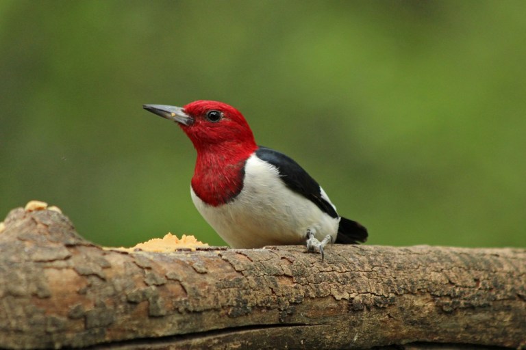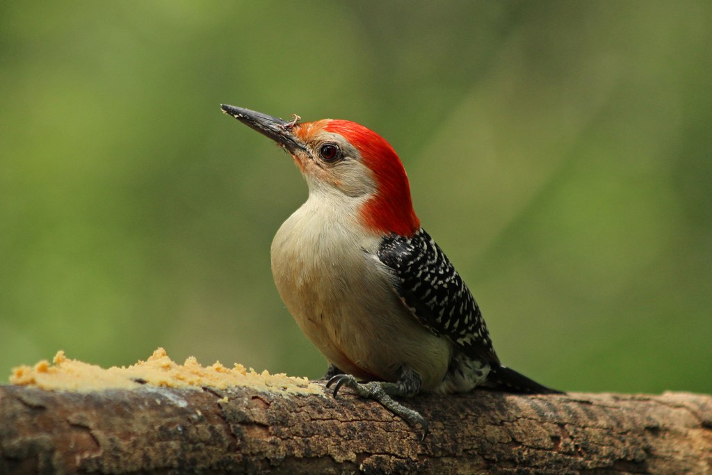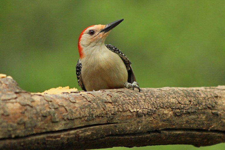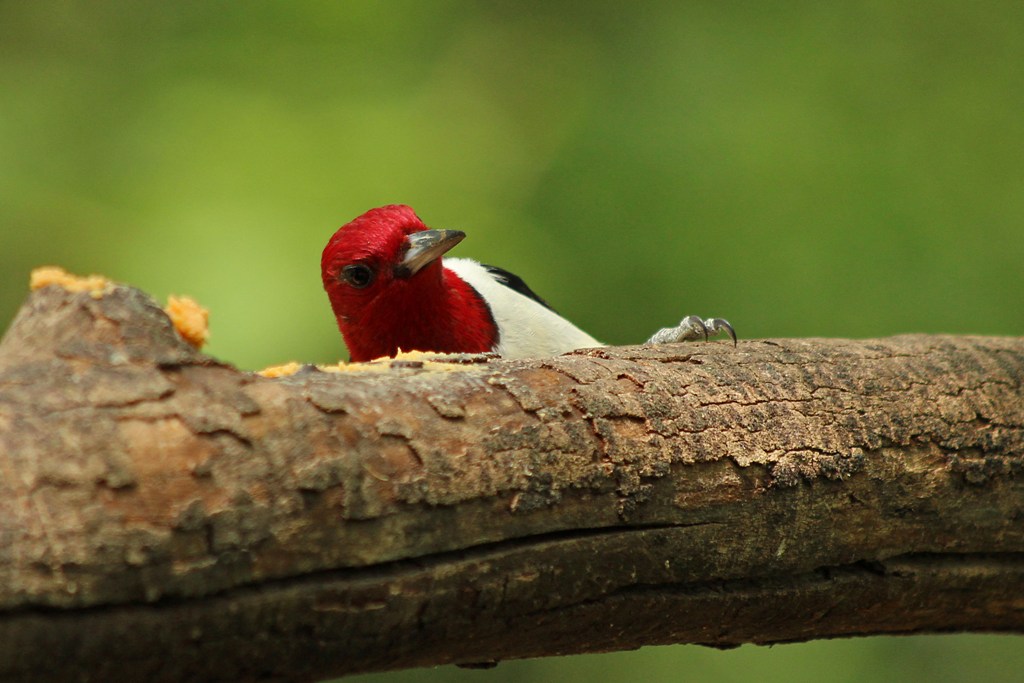 If the Red-bellied arrives, and the Red-headed happens to not be around, he will land on the branch, look about, and then quickly gobble up some food, all the while staying alert to a possible oncoming attack.