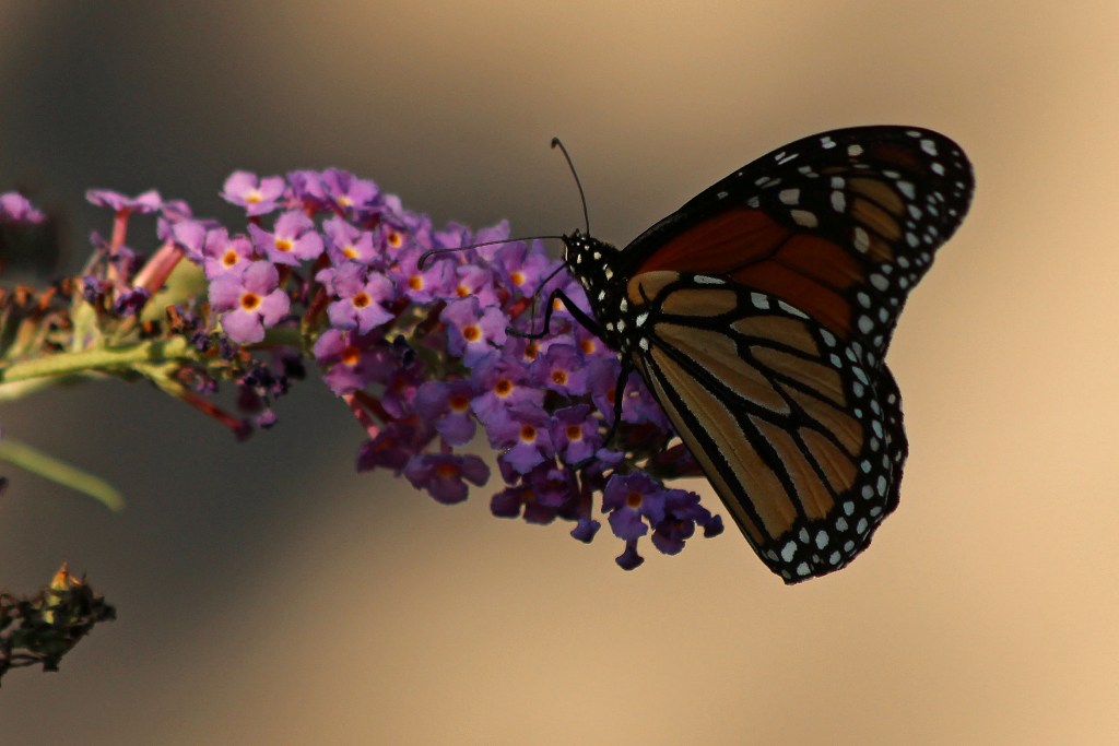 This particular Monarch was rather flitty and preferred a wings-closed posture while nipping at the nectar; but every once in awhile it would leave its wings spread for a split second while landing, so I managed to snap a couple shots.