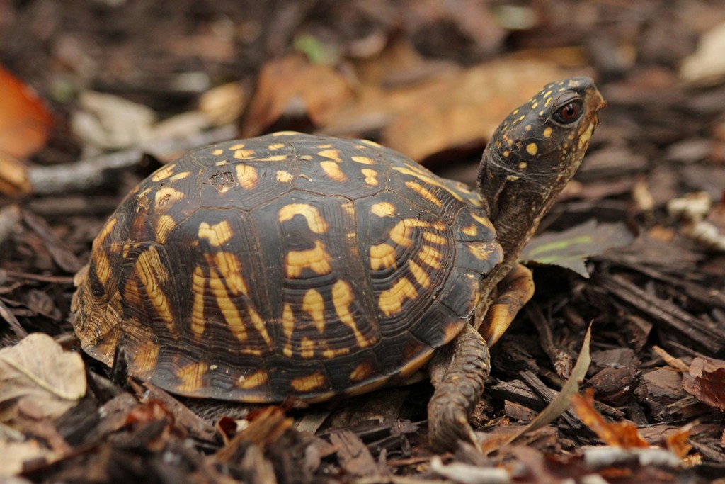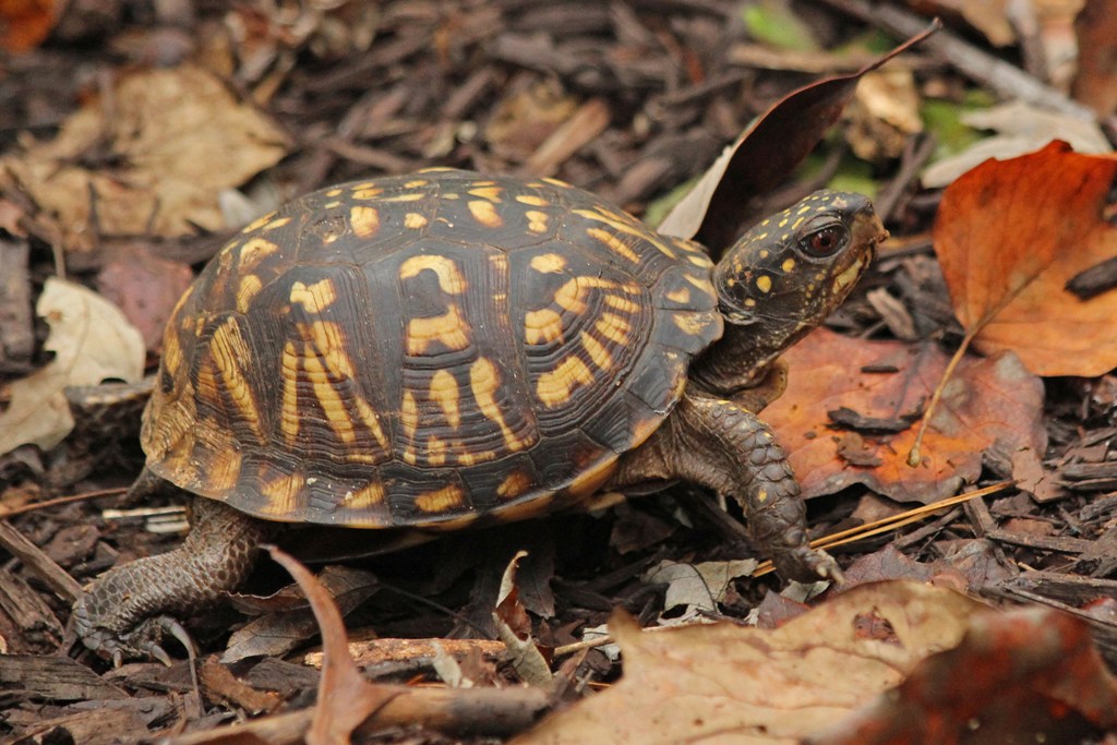 When I glanced at the path nearby, I saw the object of his attention – a handsome box turtle meandering along.