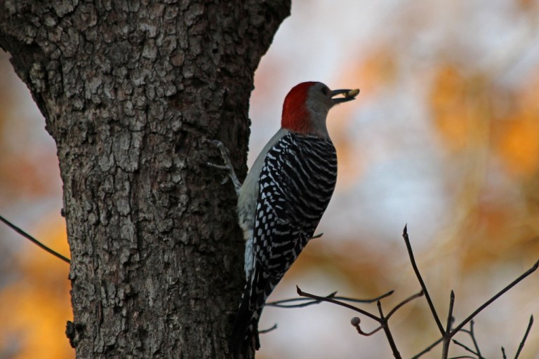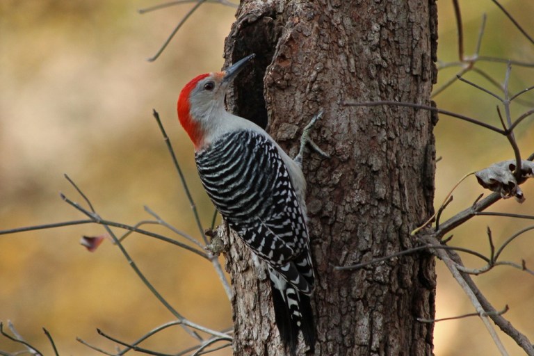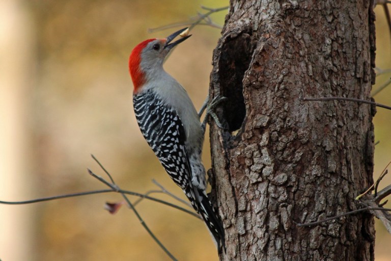 Wouldn’t you like to question the person who officially named this fellow the “Red bellied woodpecker,” since the only red is on his head?