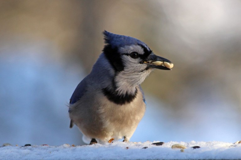 The birds were out in full force, grabbing food and then quickly flying away. It’s always hard to decide which pictures to share, so I thought today I would post three different pictures of three different birds. Let’s start with the Blue Jay…