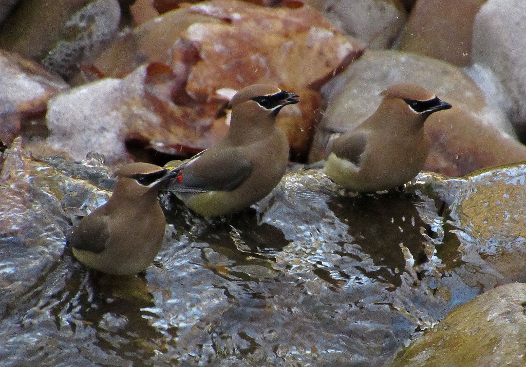 They always give themselves away by traveling in gangs & causing a commotion. Usually in a tree with fruits. I have seen them here in NC & in winters when we lived in Florida, especially in the Brazilian pepper trees, later designated “invasive species” & removed wherever discovered. But my! how the waxwings feasted on those plentiful berries. Flocks of robins too.