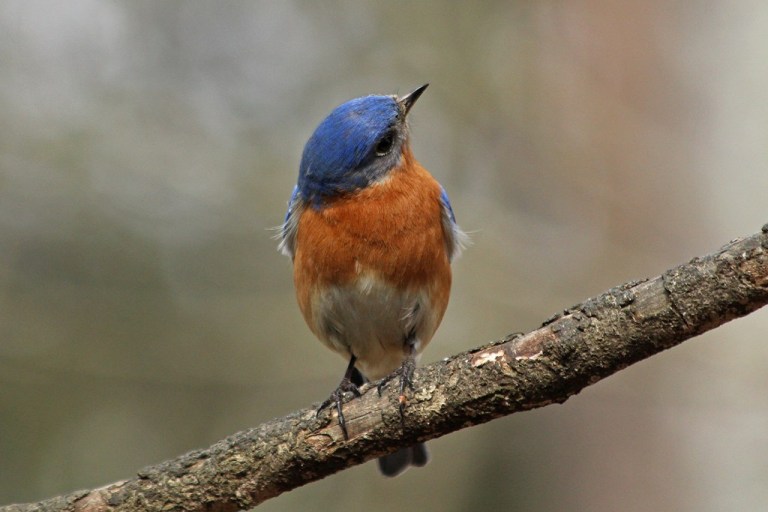 The male Bluebird that hangs about my backyard is doing his best to look dashing these days. He is rather comical as he strikes pose…