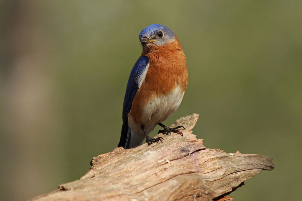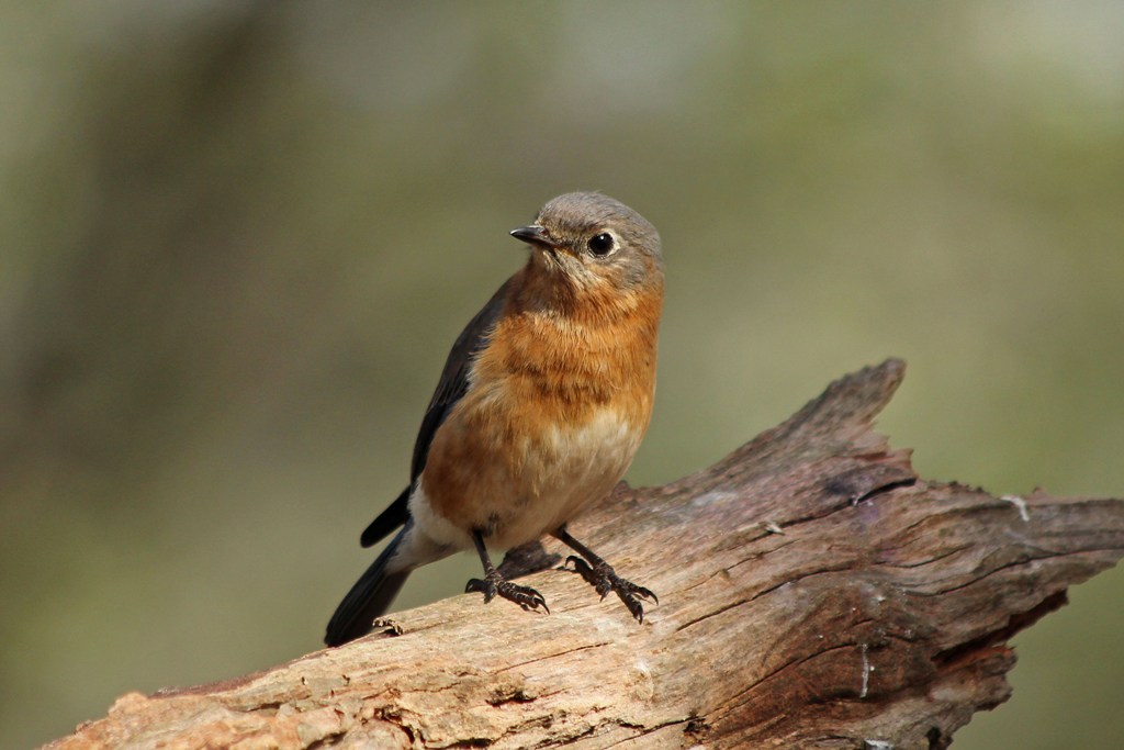 The male Bluebird that hangs about my backyard is doing his best to look dashing these days. He is rather comical as he strikes pose…