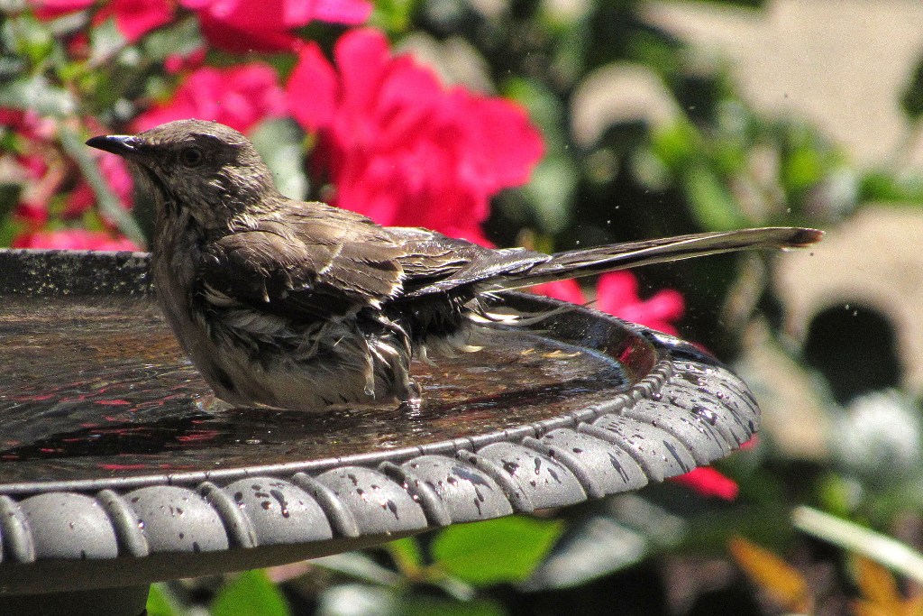 This Mockingbird was thrilled with the fresh water and wasted no time helping himself to a dip.