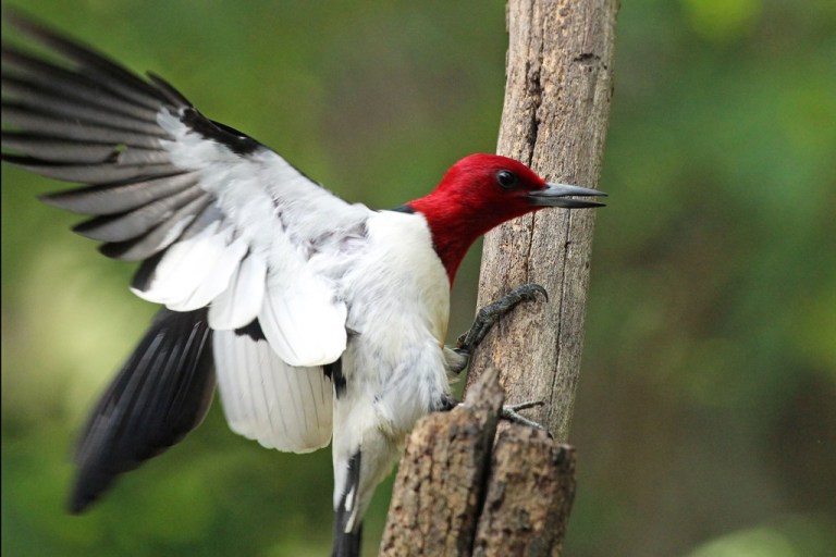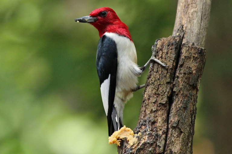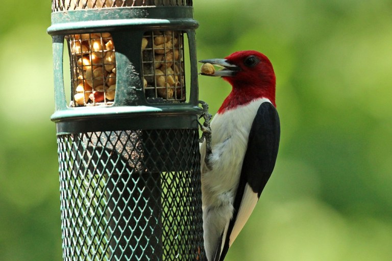 Since earlier this month, a pair of Red-headed Woodpeckers has made my backyard a daily dining spot.