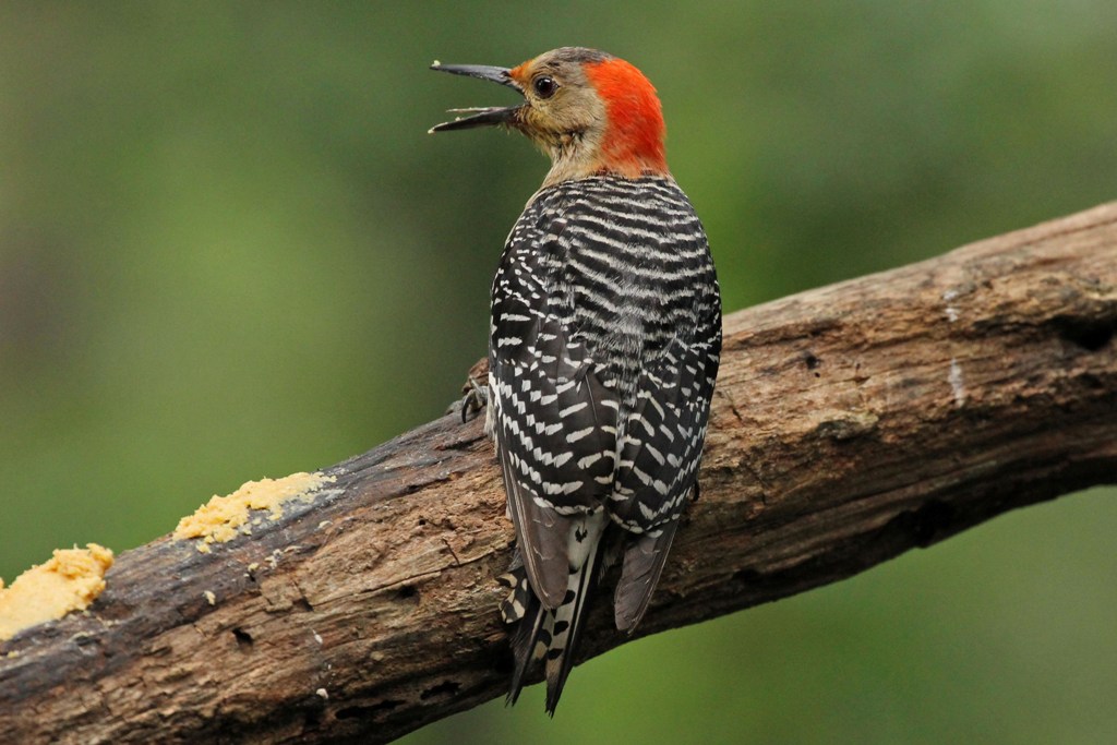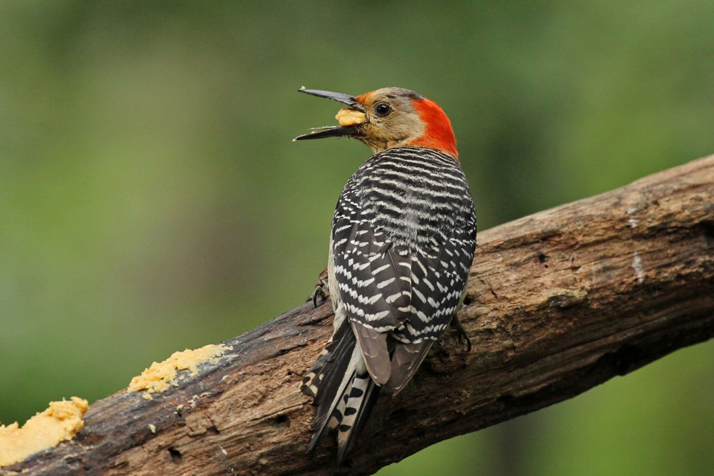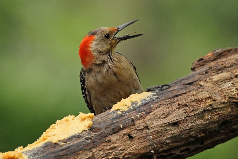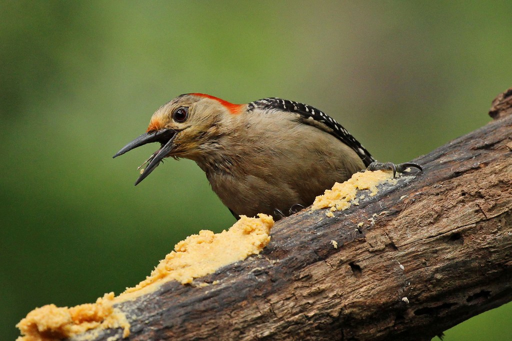 It was with this young Red-bellied Woodpecker that’s been showing up looking all aggressive with his open-beaked attitude.