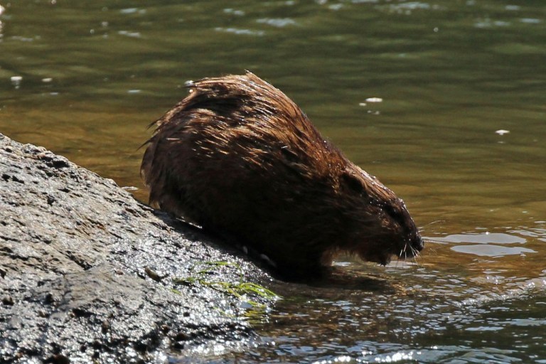 I was standing on the riverbank, looking for a duck or a heron that wanted to pose, when along came this muskrat.
