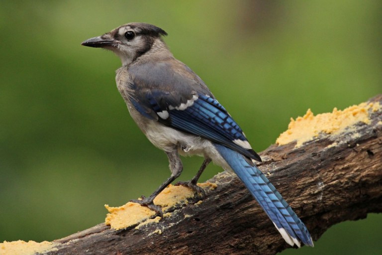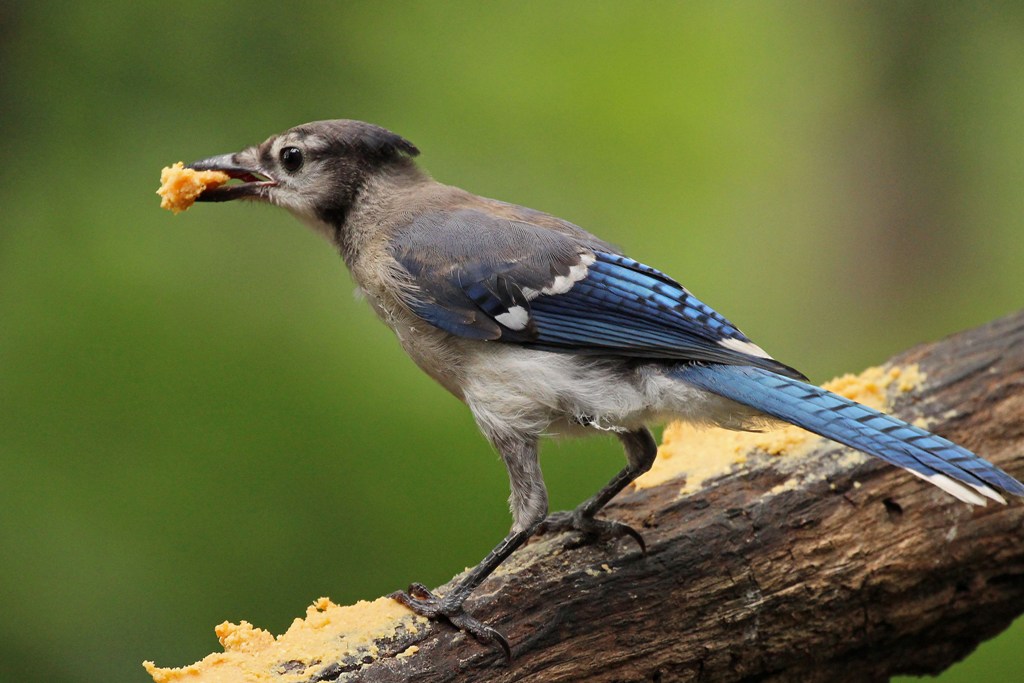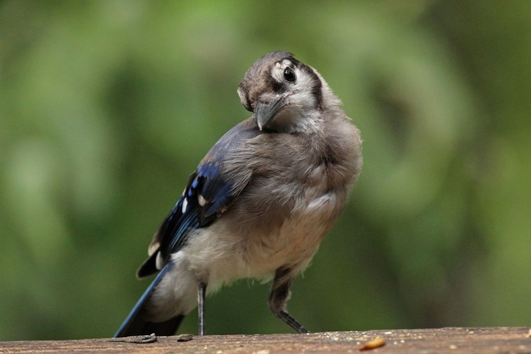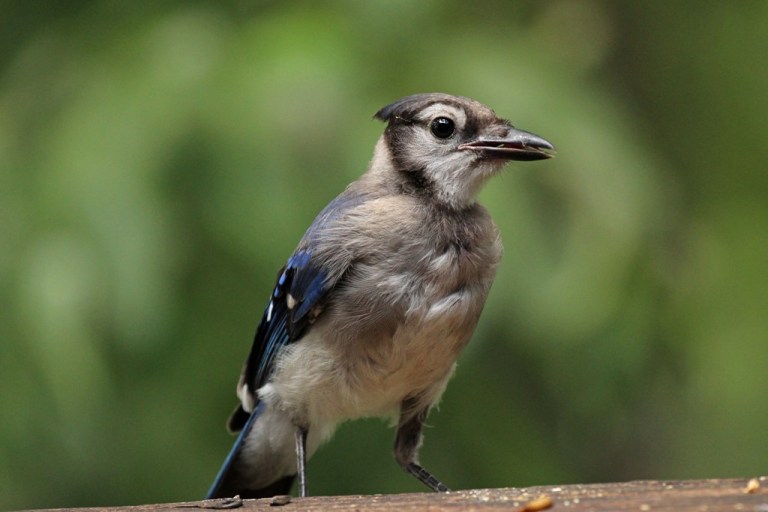 The last time I posted pictures of this juvenile Jay, he had followed his Mama to the feeders and was begging for food. But I suspected that it wouldn’t be long before he was venturing out on his own.